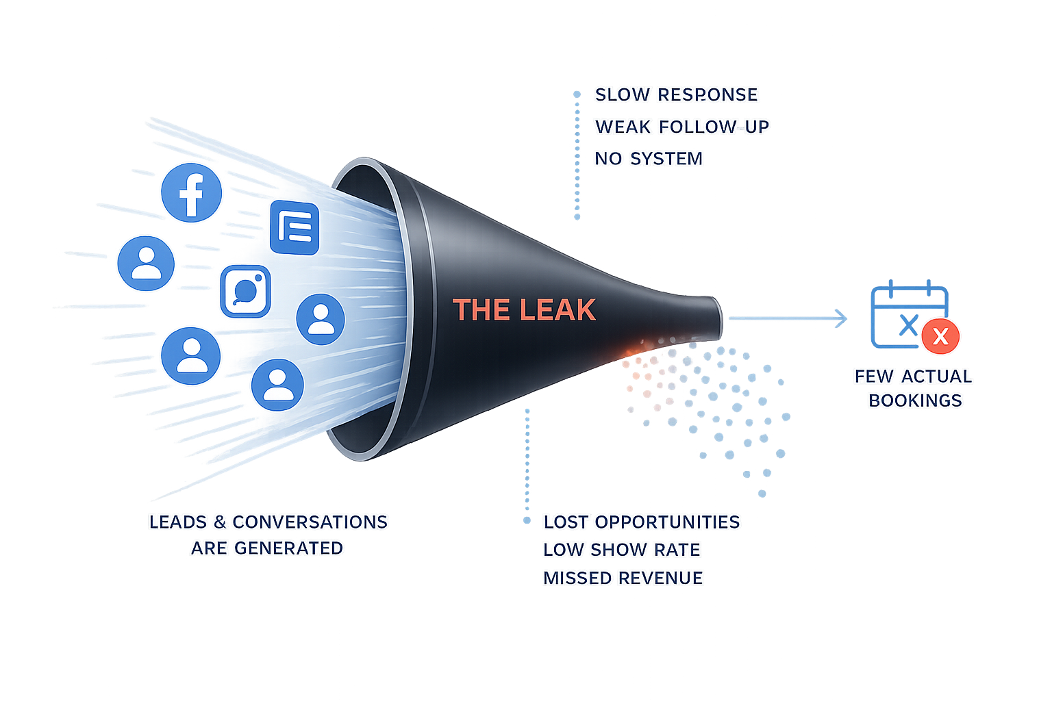 Many agencies already generate leads or conversations for their clients, but too many opportunities are still lost after the form submission, comment, DM, or first contact. The backend is often too weak, too manual, too unclear, or too inconsistent to support reliable conversion.