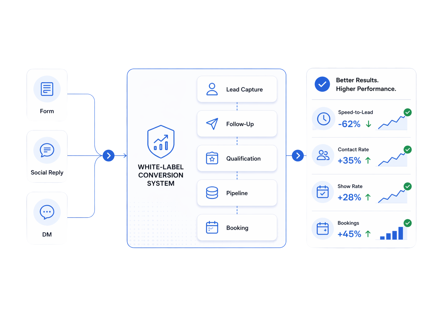 For agencies that already generate leads or social engagement for their clients and want a clearer, more resellable backend to capture better, follow up faster, and improve conversions.